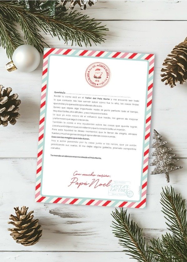 – Respuesta oficial del Polo Norte, firmada por Papá Noel y con sellos especiales.